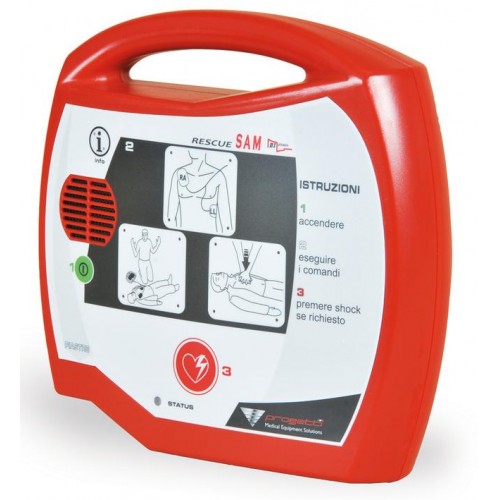 A cardiac arrest may occur to anyone in any moment. Thanks to RESCUE SAM everyone can save a life. This semiautomatic public use defibrillator guides the rescuer through the cardiopulmonary resuscitation operations. Thanks to its sophisticated analysis algorithm, fully developed in Italy, this important device knows when the electric shock is needed. Compact, ergonomic and lightweight, RESCUE SAM is a life-saving device, indispensable to make your environment a cardio-protected site. Anyone can be victim and rescuer.